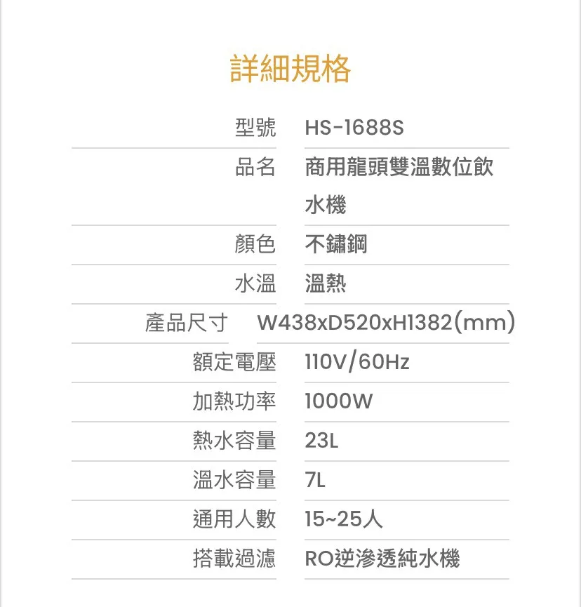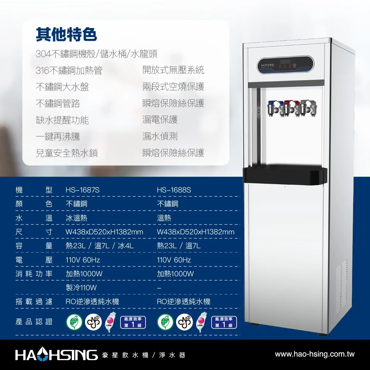 商品《HAOHSING豪星》HS-1687S 商用龍頭三溫飲水機