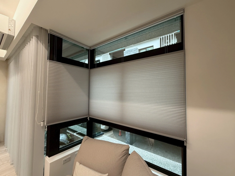 風琴簾的核心結構是「蜂巢中空層」,能形成隔熱的空氣層,是它和一般布簾/捲簾很不一樣的地方。