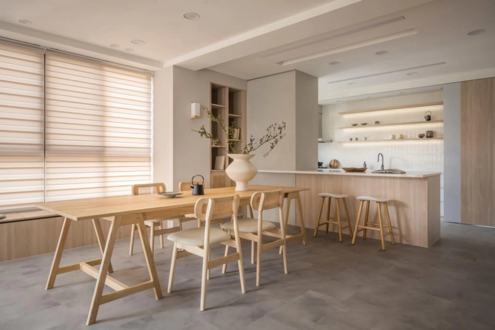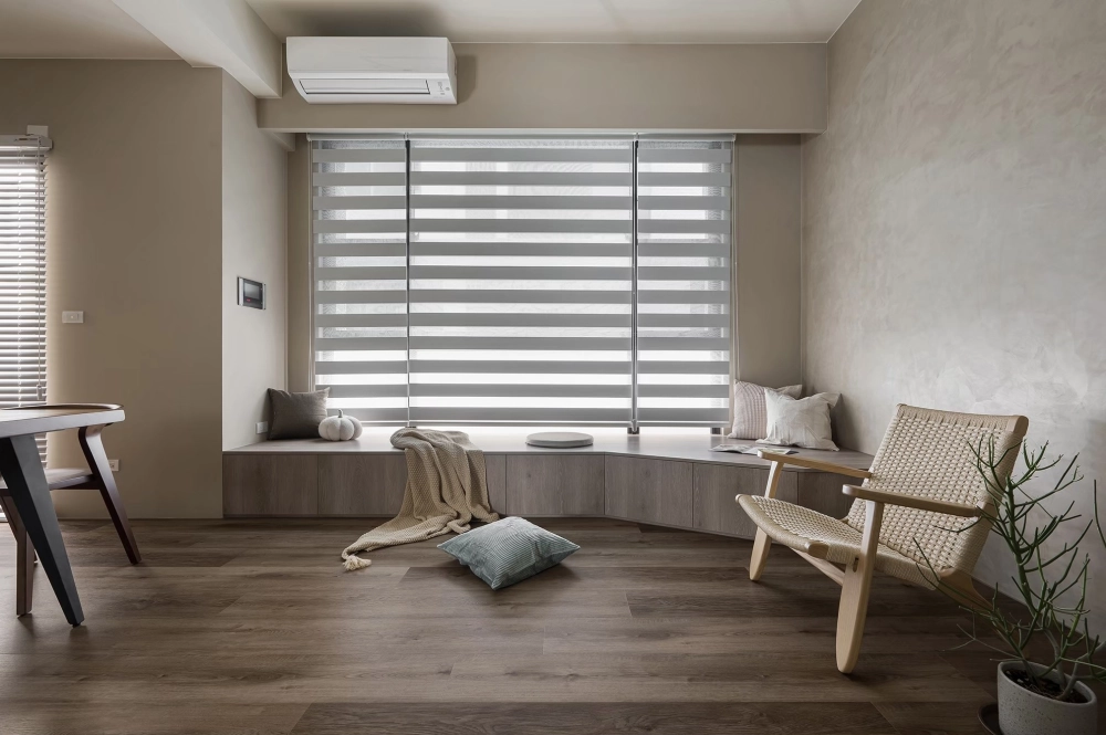 • 客廳:想要白天採光通透,又想隨時調整眩光與隱私,調光簾非常合適。