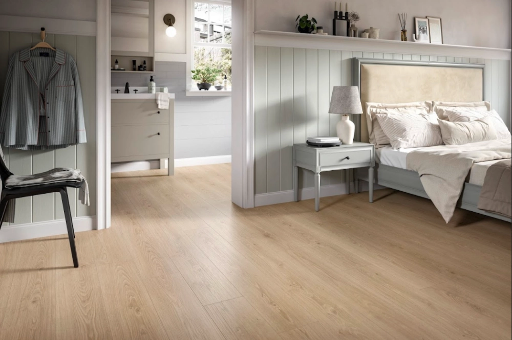 不僅花色、刻紋的選擇繁多,就連濕氣較高地區也很適合施作,而木材與黏著劑,全都可以回收再利用,且擁有德國藍天使的環保標章認證。
