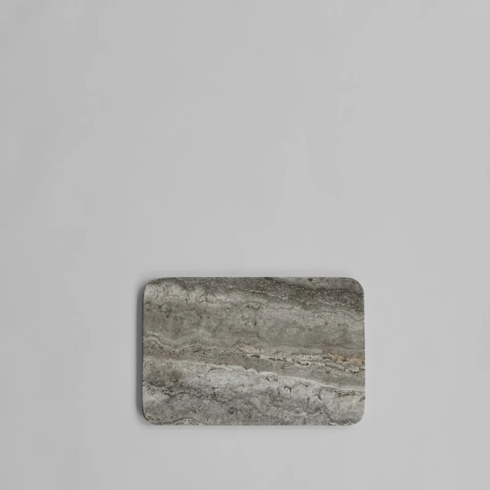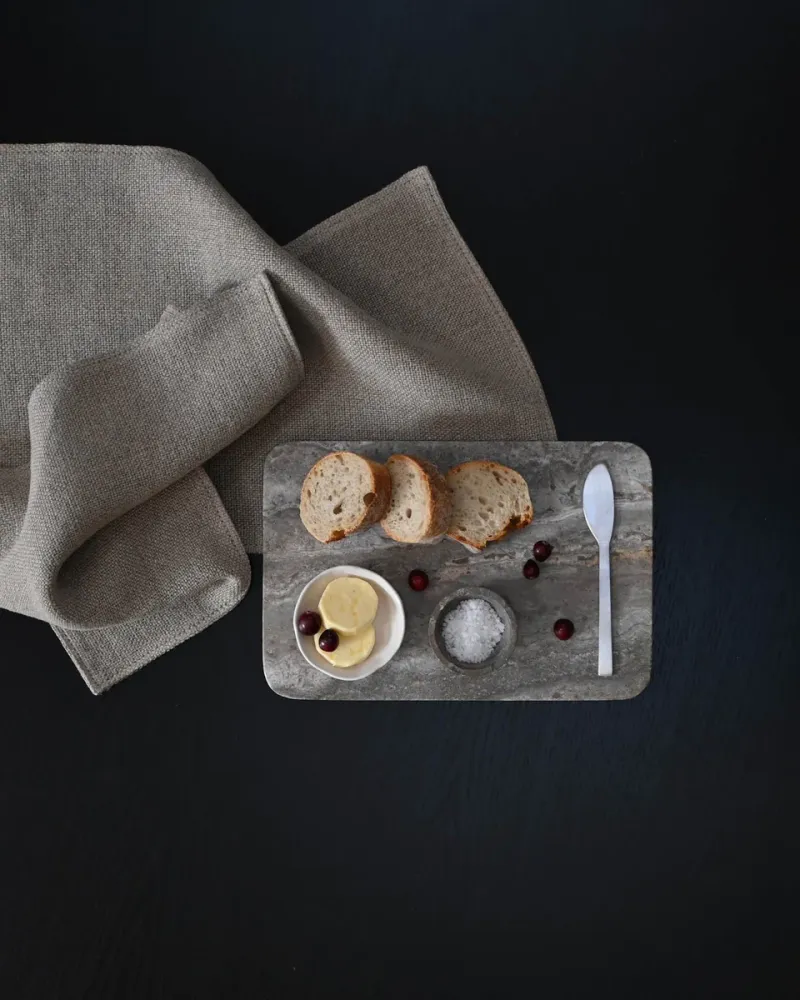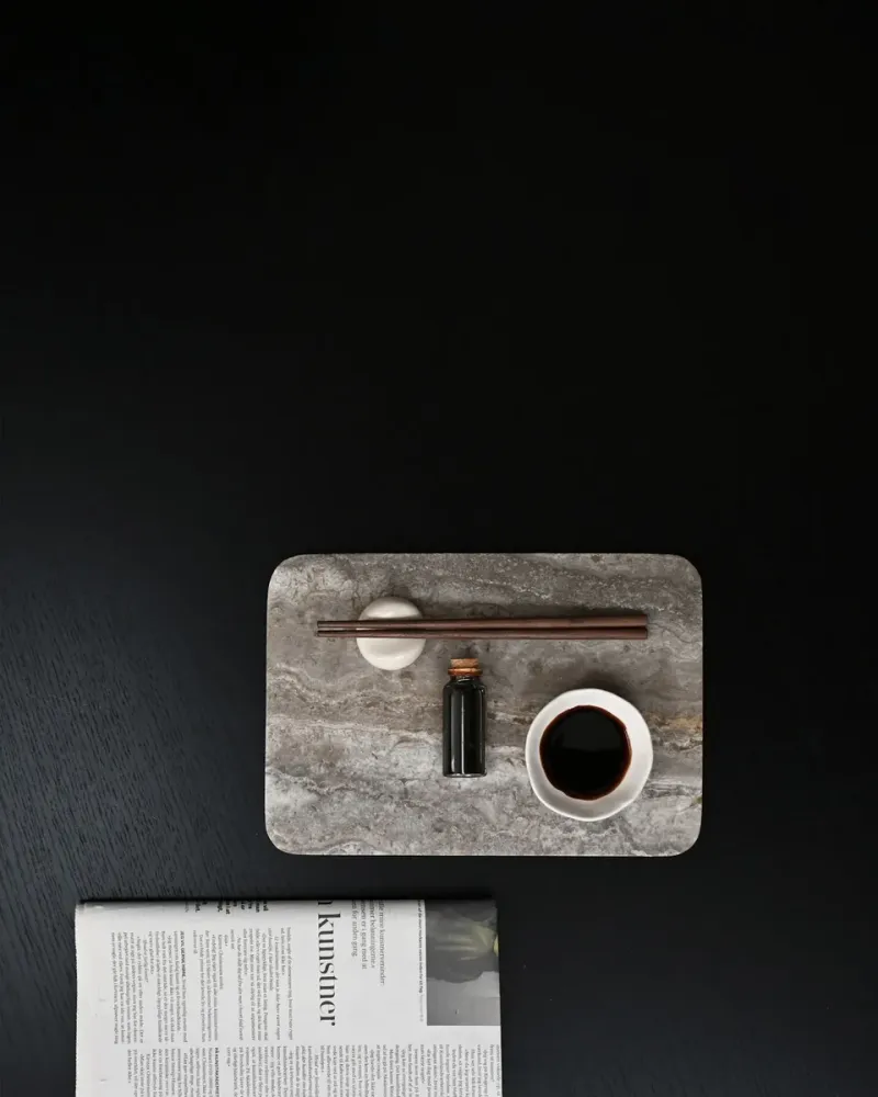 Enkei 系列採用美麗的銀灰洞石製成,每一件托盤都展現出石材獨有的紋理和質感,完美融合了俐落的幾何造型與有機優雅的氣息。長方形設計不僅實用多變,也展現出高雅的視覺效果,。無論是擺放小食、開胃菜還是各式甜點,都能提升餐桌的格調,散發出低調而細膩的奢華感。