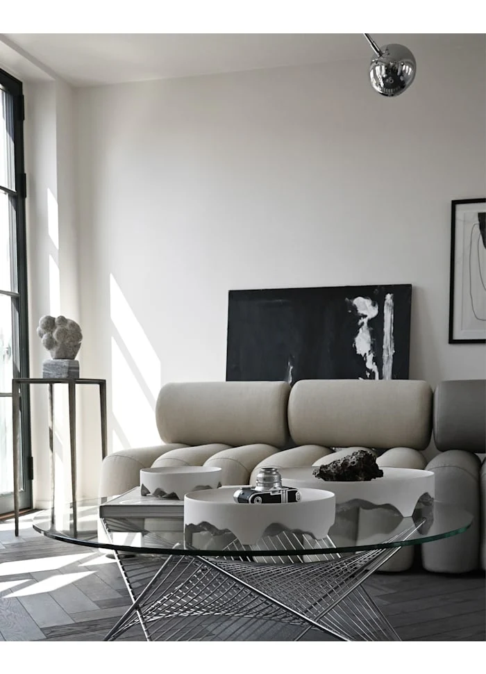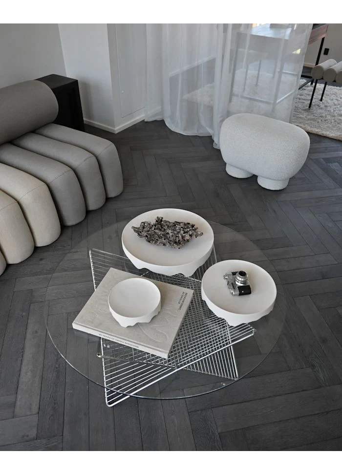 Iwa 的設計擁有完美的圓形上表面,帶有細微的深度以及俐落清晰的邊緣,明確勾勒出圓周。這種極簡而寧靜的上部造型,與底部粗獷、有機的質感形成鮮明對比 —— 彷彿崎嶇的山壁或破裂的石面。光滑細膩的表面與岩石般粗獷底座的互動,賦予托盤獨特的雕塑氣質,使其超越單純的功能性,成為一件靜謐的表達物件。