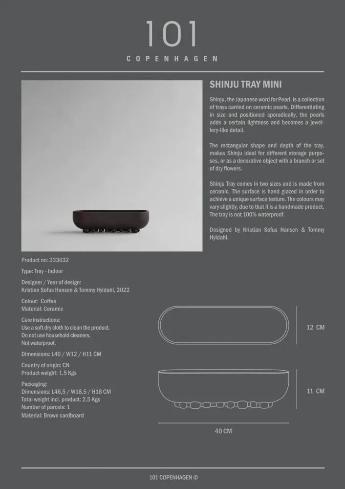 Shinju 托盤有兩種尺寸,由陶瓷製成,表面經過手工上釉,以獲得獨特的表面紋理。