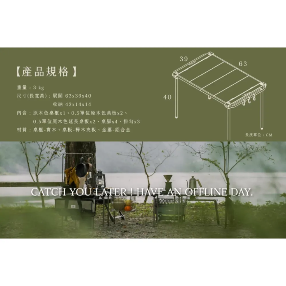 Offline 離線桌組【綠色工場】台灣精製 IGT單位桌 2單位 拼接桌 鋁合金 實木桌板 收納輕巧 附收納袋