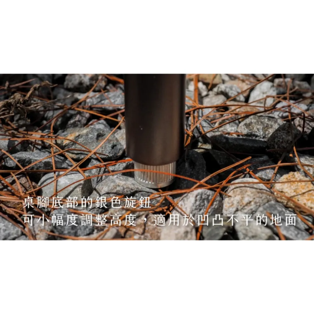 ▸ 桌腳底部的銀色旋鈕,可小幅度調整高度,適用於凹凸不平的地面
