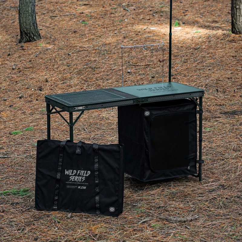 KAZMI KZM 工業風行動廚房【綠色工場】餐廚桌 摺疊行動廚房 露營桌 烹煮炊事 鋁合金/鋼網桌 收納桌 附收納袋