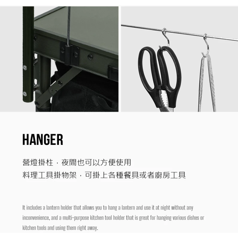 🔹營燈掛柱,夜間也可以方便使用、料理工具掛物架,可掛上各種餐具或者廚房工具