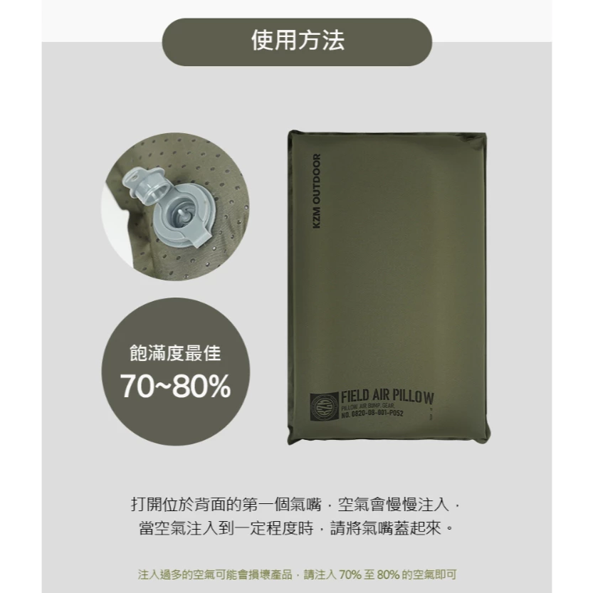 KZM 輕柔舒眠自動充氣枕【綠色工場】kazmi 睡枕 旅行枕 枕頭 充氣枕頭 高回彈海綿 人體工學設計 自動充氣