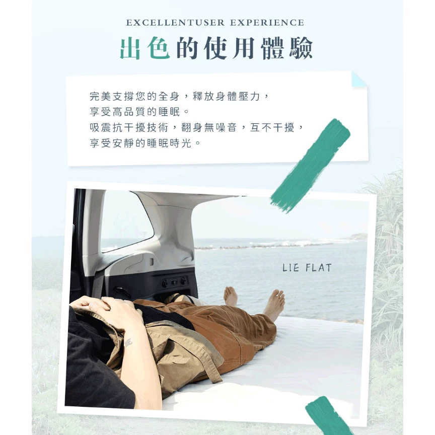 OutdoorBase 彈絲車中床【綠色工場】車用床墊 車宿 車露野營 充氣睡墊 車泊 露營充氣床墊 汽車床墊