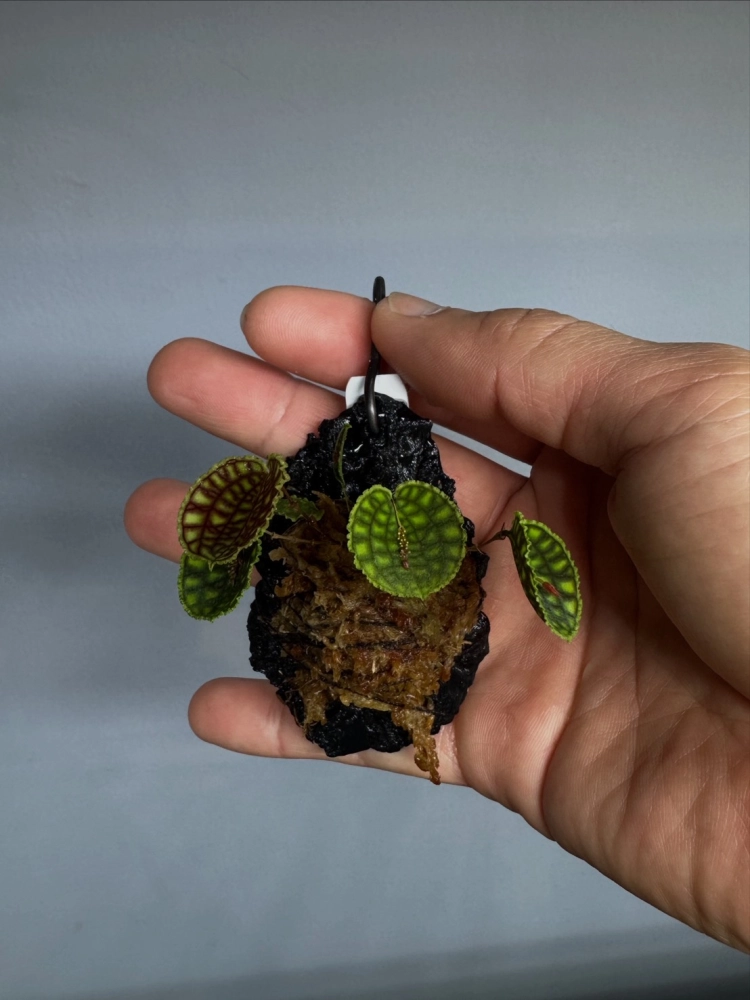 - 葉片:葉片細小(直徑約 1.5–2.5 公分),具有獨特的深綠色網狀脈絡與淺色背景,外觀有時被形容為酷似「西瓜」或「珠寶」。