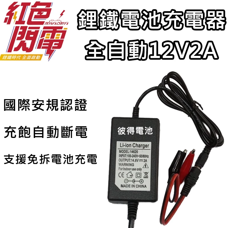 ·紅線夾電池正極、黑線夾電池負極,插上插座開始充電