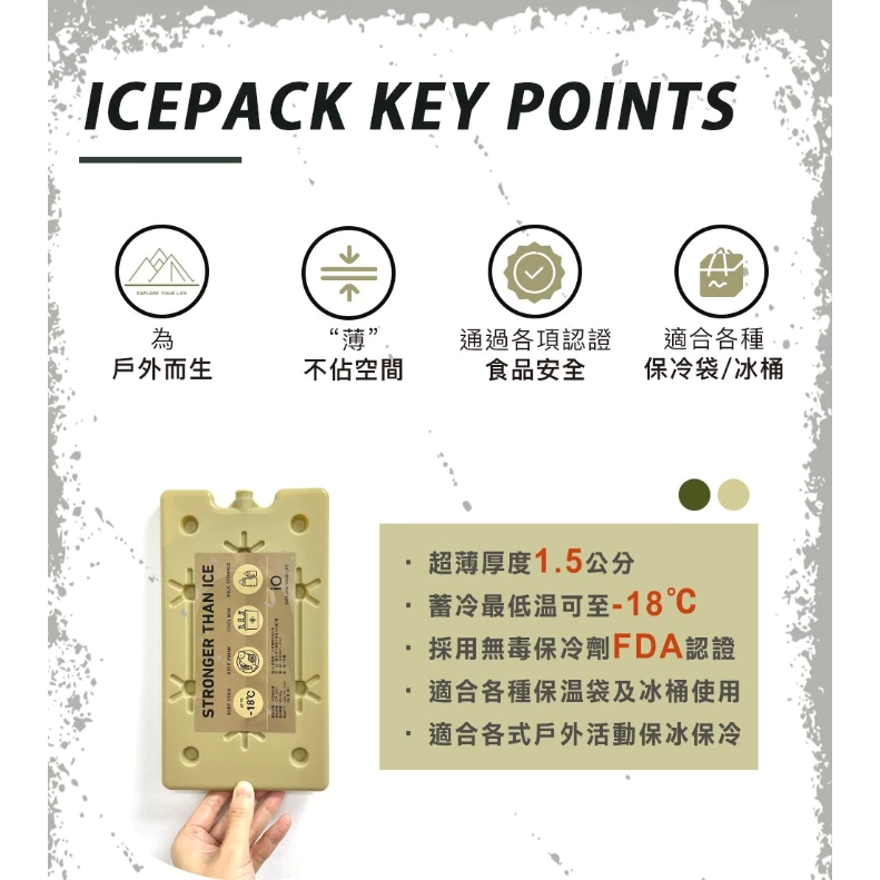 iO 長效冰磚【綠色工場】保冰冰磚 保冰劑 保冷劑 保鮮保冷 FDA、SGS國際認證 安全無毒 風格露營 沙/軍綠色