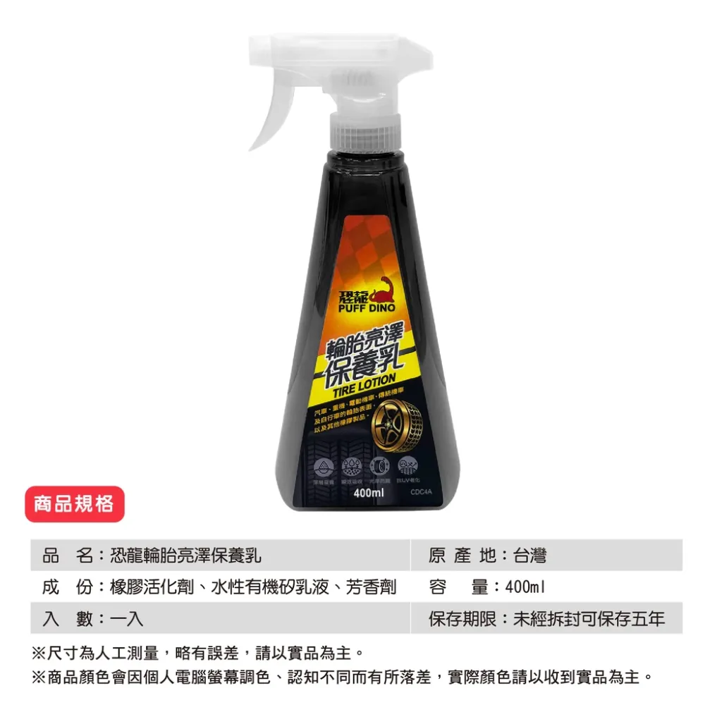 商品PUFF DINO 恐龍輪胎亮澤保養乳輪胎保養劑.輪胎亮光劑.輪胎光澤劑.輪胎亮光保養劑.輪胎