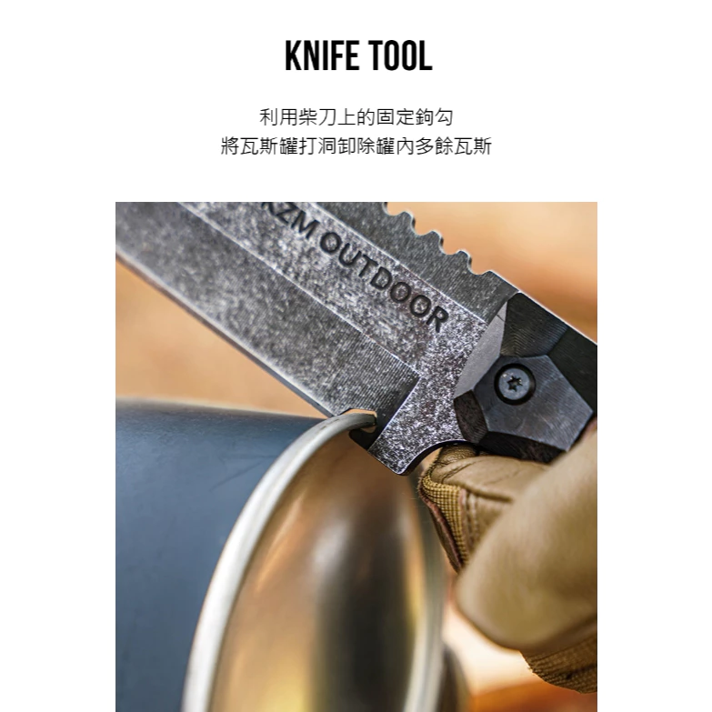 🔹利用柴刀上的固定鉤勾,將瓦斯罐打洞卸除罐內多餘瓦斯
