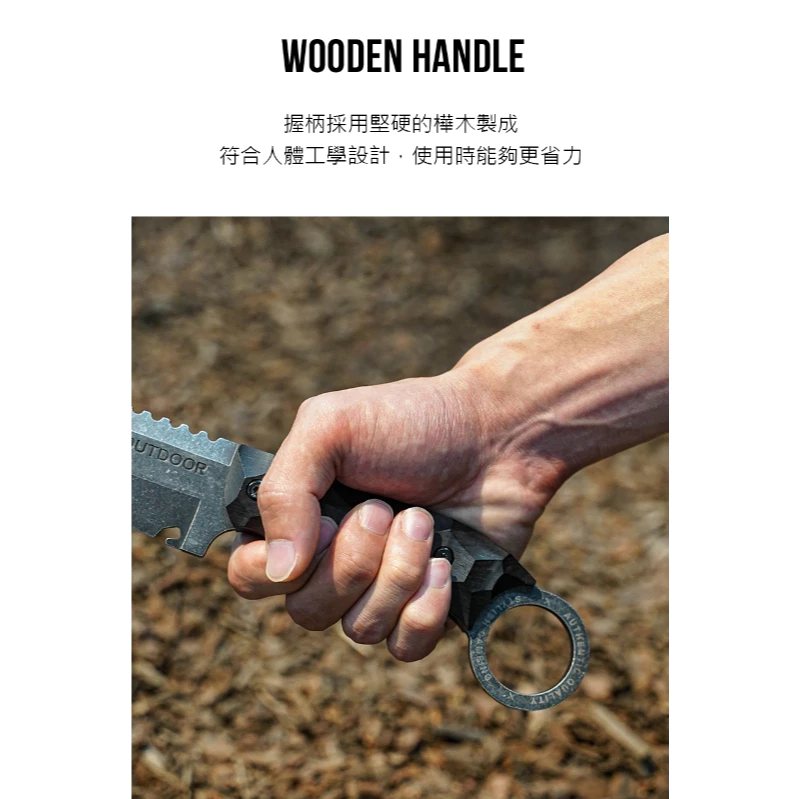 🔹工業風柴刀具有出色的切割力和厚實的5T厚度,讓您快速劈柴成堆