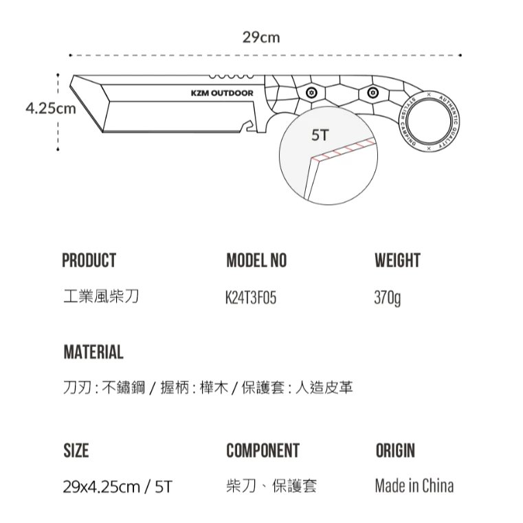KAZMI KZM 工業風柴刀【綠色工場】求生刀 直刀 戶外刀 小刀 露營刀 野營刀