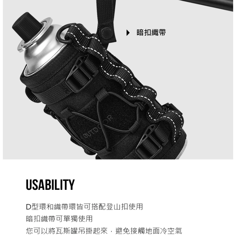 🔹D型環和織帶環皆可搭配登山扣使用,暗扣織帶可單獨使用