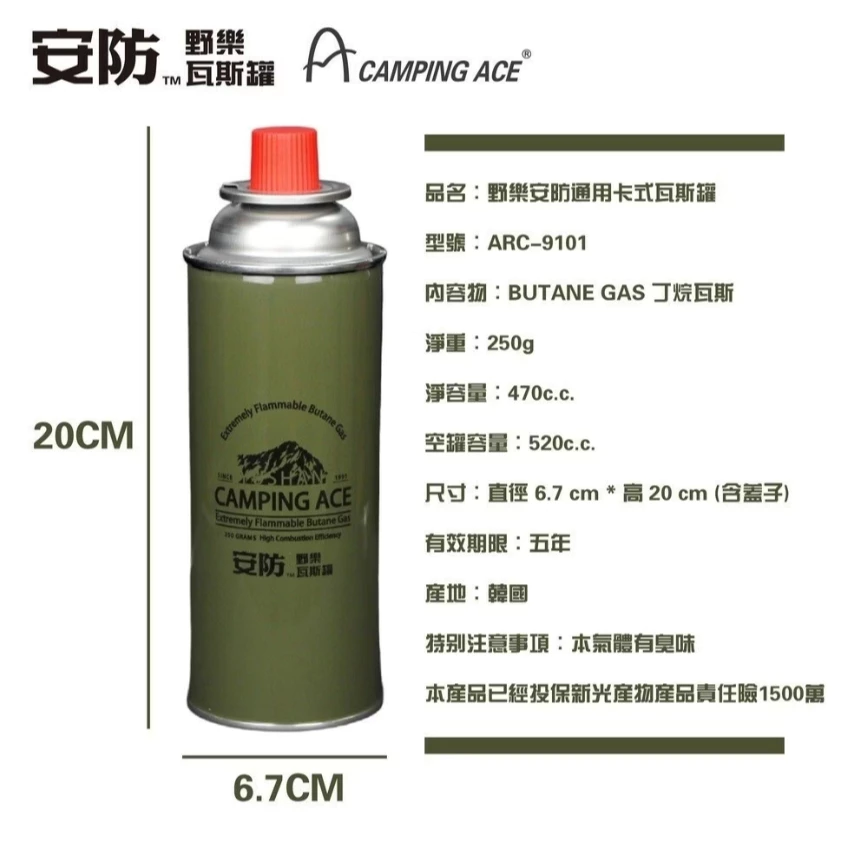 野樂 Camping Ace 3入一組 安防TSR卡式瓦斯罐 【綠色工場】通用卡式瓦斯 卡式瓦斯罐 瓦斯爐 卡式爐 露營