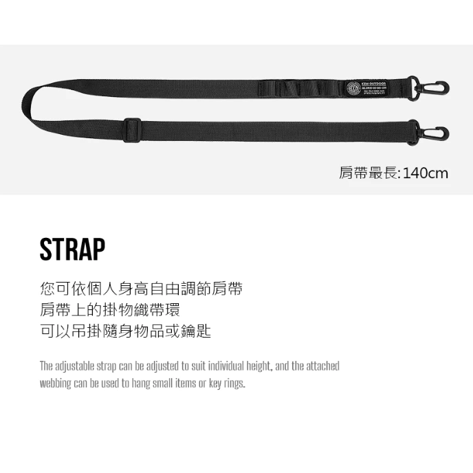 🔹您可依個人身高自由調節肩帶,肩帶上的掛物織帶環,可以吊掛隨身物品或鑰匙