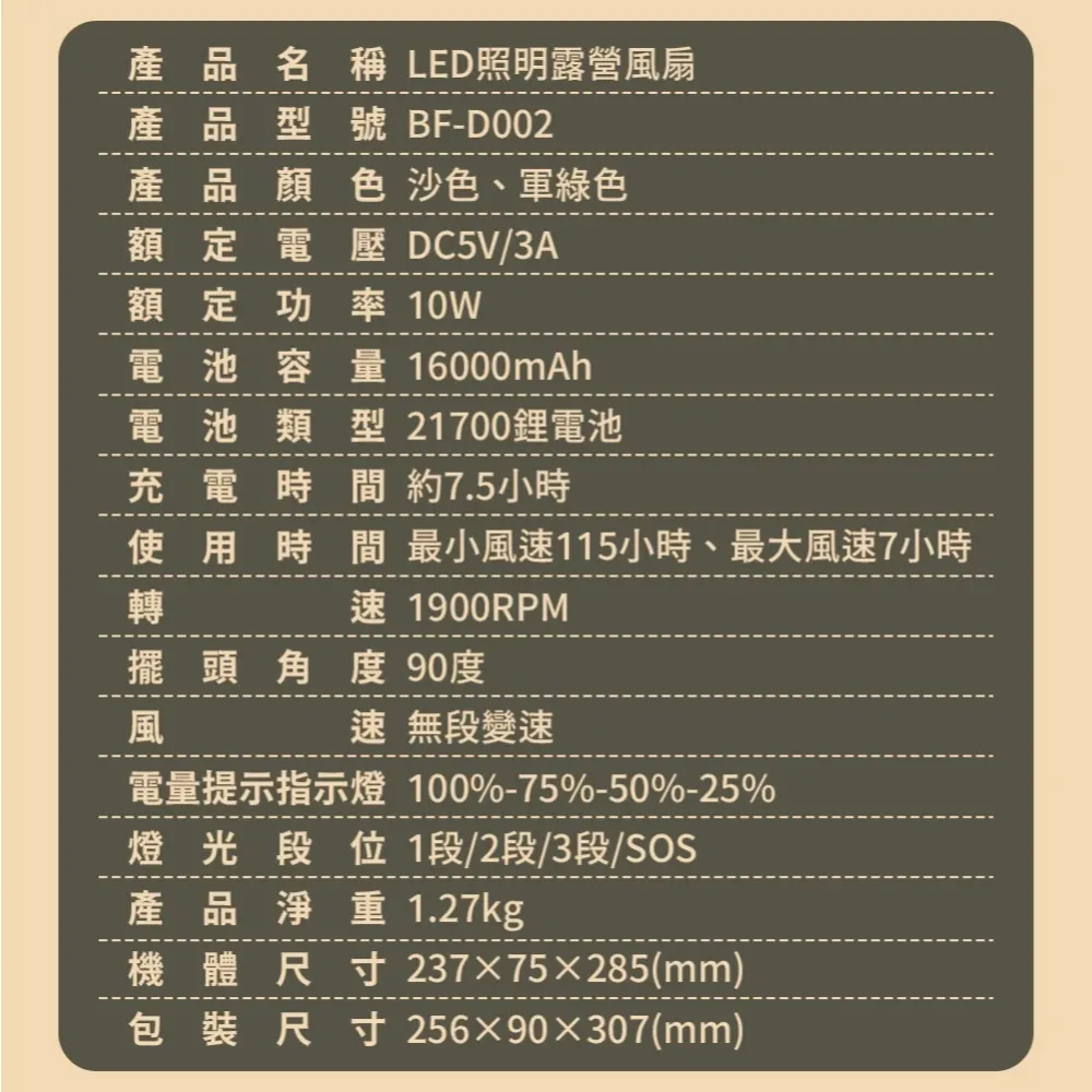 🔹夜間露營還是戶外探險,它都能為您提供舒適的風速和明亮的照明,戶外活動的不二選擇。