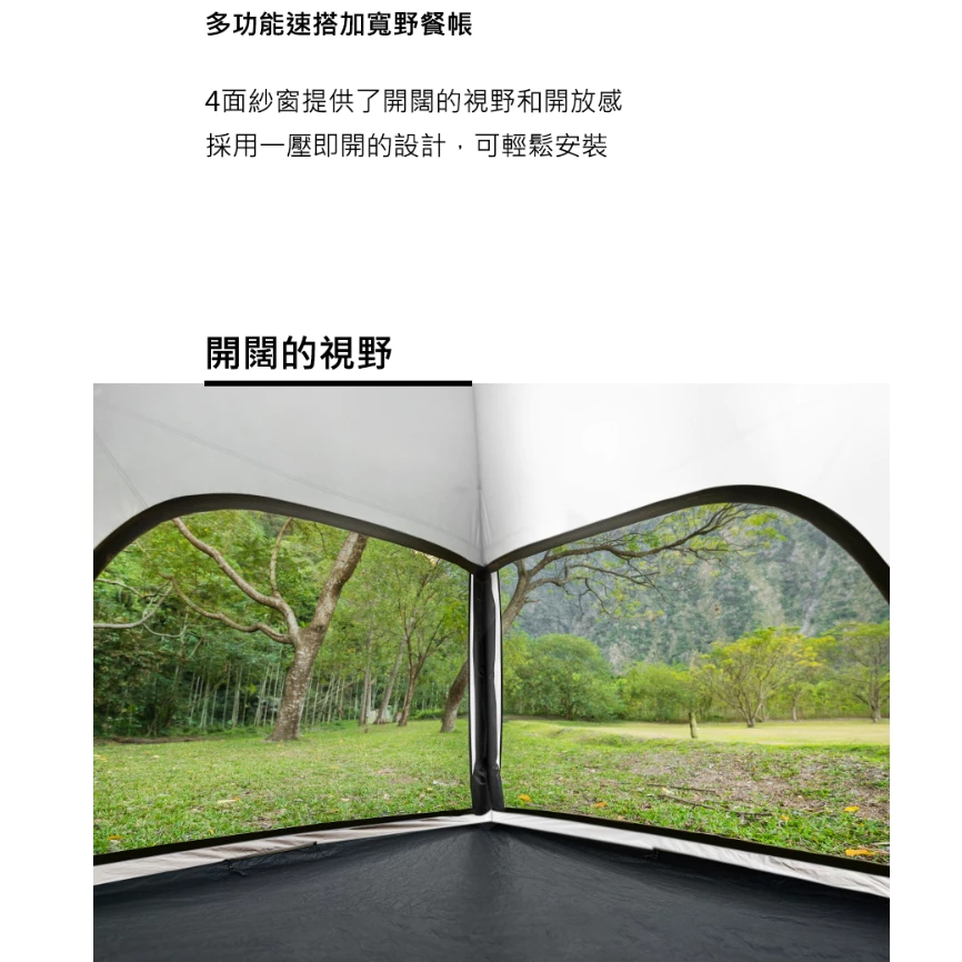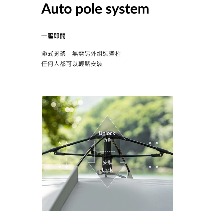 🔹傘式骨架,無需另外組裝營柱,任何人都可以輕松安裝