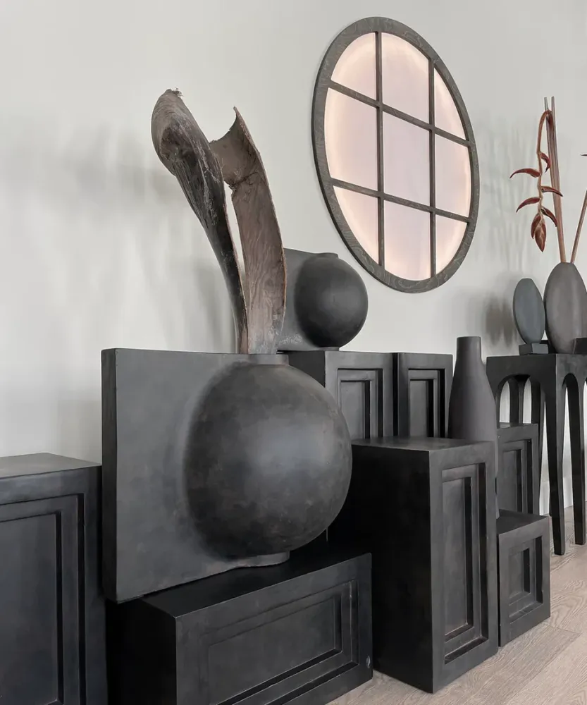 挑戰了花瓶的想法,並根據從角度來徹底改變外觀:從模仿傳統花瓶到雕塑物件,Offset Vase由纖維混凝土製成,有兩種尺寸。