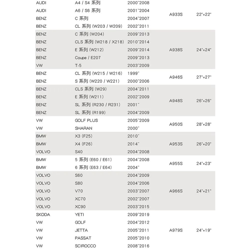 尺寸:24吋(600 mm) + 22吋 (550 mm) 兩支雨刷一組