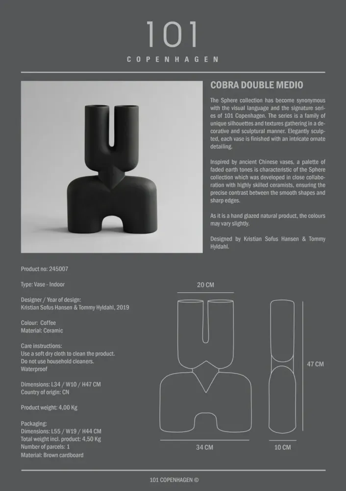 • 眼鏡蛇花瓶,中型 - 咖啡色
