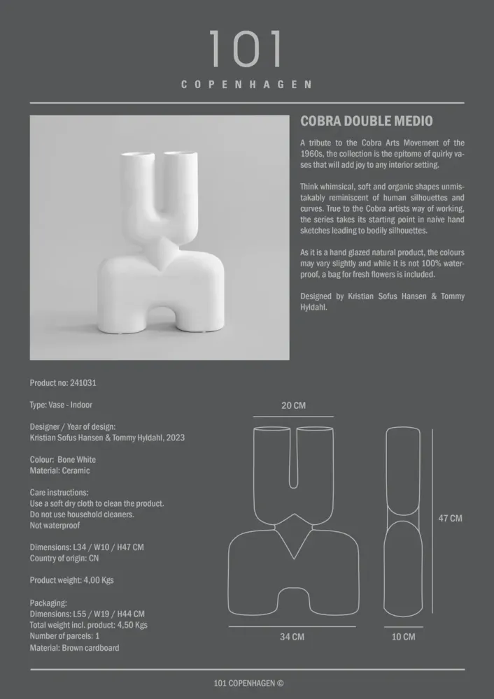 該系列是對 1960 年代眼鏡蛇藝術運動的致敬,是古怪花瓶和燭台的縮影,可擺至於任何室內環境增添歡樂。如同異想天開、柔軟而有機的形狀,讓人聯想到人體輪廓和曲線。該系列以手繪草圖為起點,形成身體輪廓。