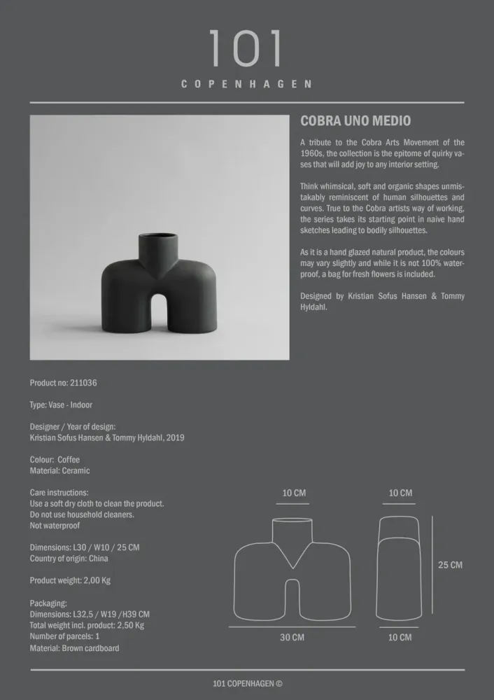• 眼鏡蛇花瓶,Uno,中型 - 咖啡色