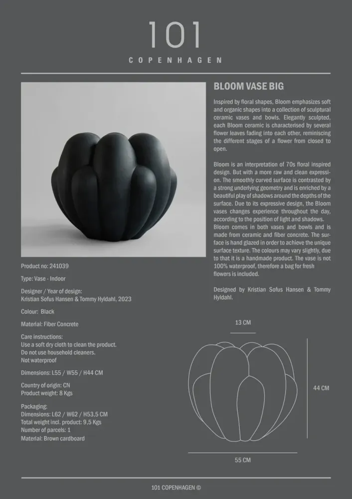 Bloom 有花瓶和托盤兩種形式,由陶瓷和纖維混凝土製成。表面經過手工上釉,呈現獨特的表面紋理。