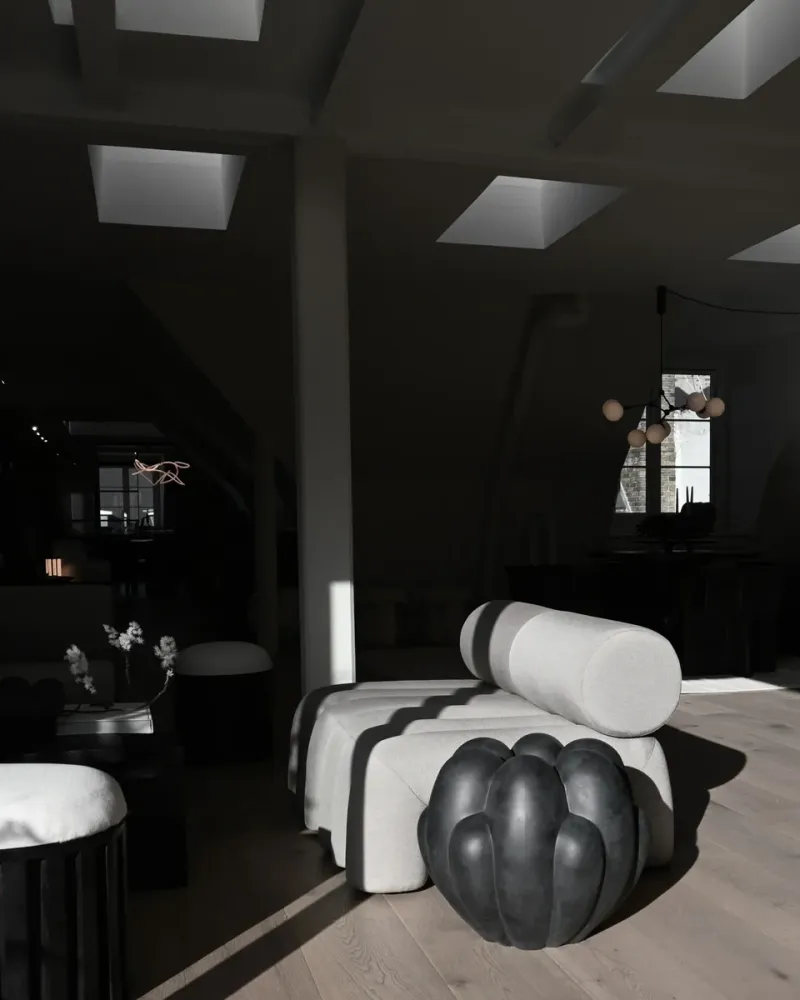 Bloom 是對 70 年代花卉靈感設計的詮釋。光滑的曲面與強烈的底層幾何形狀形成鮮明對比,由於其富有張力的設計,通過日照光影的變換由表面至深處,並因光影變化在一天中展現不同的感受。