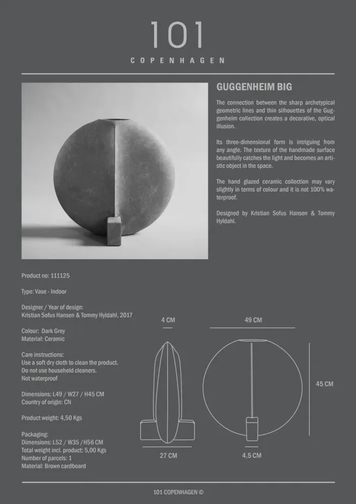 Guggenheim 系列藉由鮮明典型的幾何線條與纖薄的輪廓之間的牽動聯繫創造出的設計品。視覺上的交錯在平面器皿是個立體且任何一個角度看都有趣。手工製作的表面紋理及切面細緻的捕捉光線,是空間裡的藝術品。