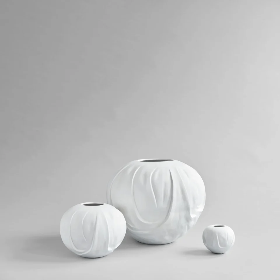 Orimono 花瓶共有三種尺寸,陶瓷材質搭配手工釉面,展現獨特霧面質感。
