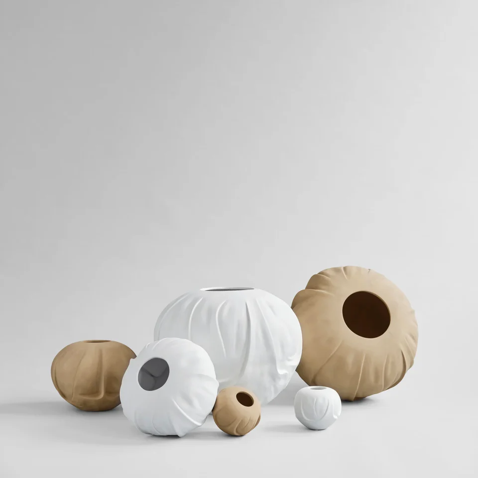 Orimono 花瓶共有三種尺寸,陶瓷材質搭配手工釉面,展現獨特霧面質感。