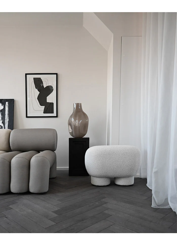此系列以日文單字 「Bakku(バッグ)」 命名,意為「包袋」。其設計靈感源於柔軟塌落的袋形,呈現獨特且流暢的造型。每一只花瓶都在細膩的曲線與自然的微小差異中,展現不完美之美,為空間帶來藝術般的優雅氣質。