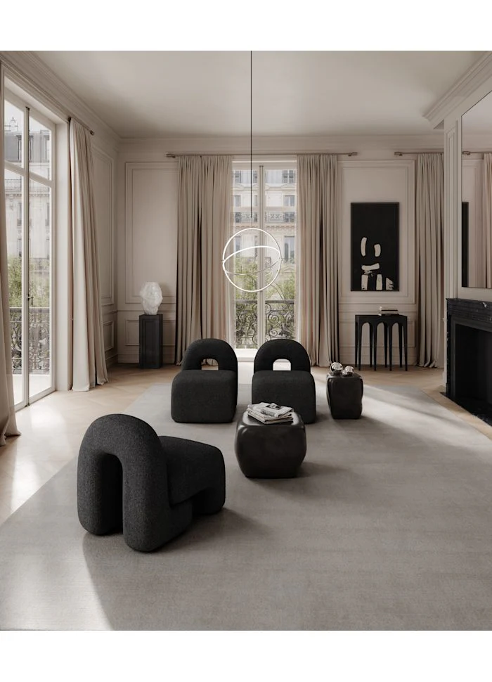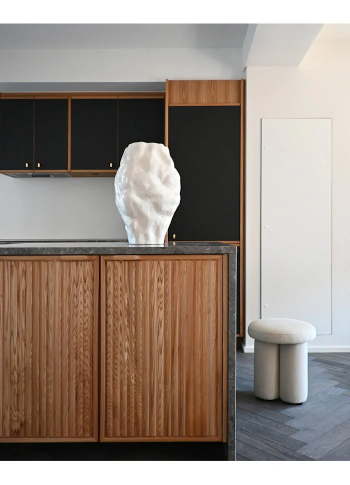 Katachi 在日語中意為「形」,強調表面、光影之間的互動。其不規則的表面營造出層疊的小陰影,突顯出有機的造型與輪廓。
