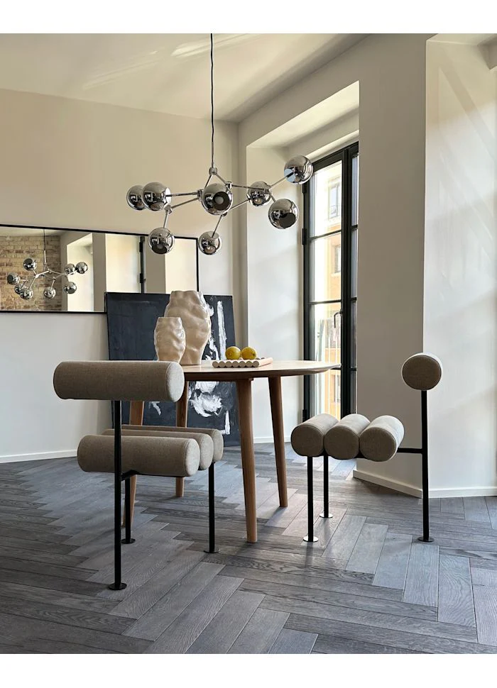 Katachi 在日語中意為「形」,強調表面、光影之間的互動。不規則的表面營造出層疊的小陰影,突顯出有機的造型與輪廓。