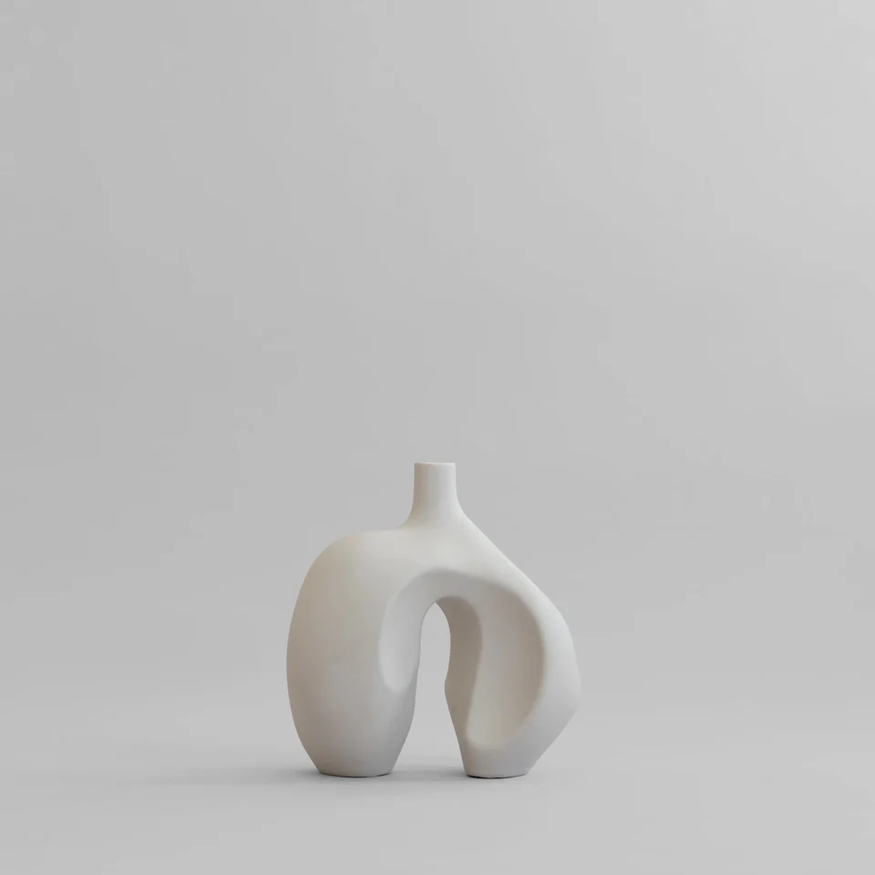 以日文中代表「律動」的詞彙命名,Ni 花器系列透過造型捕捉了運動的本質。每一只花器皆以陶瓷製作,呈現充滿張力與流動感的有機輪廓,喚起速度與流暢的意象。