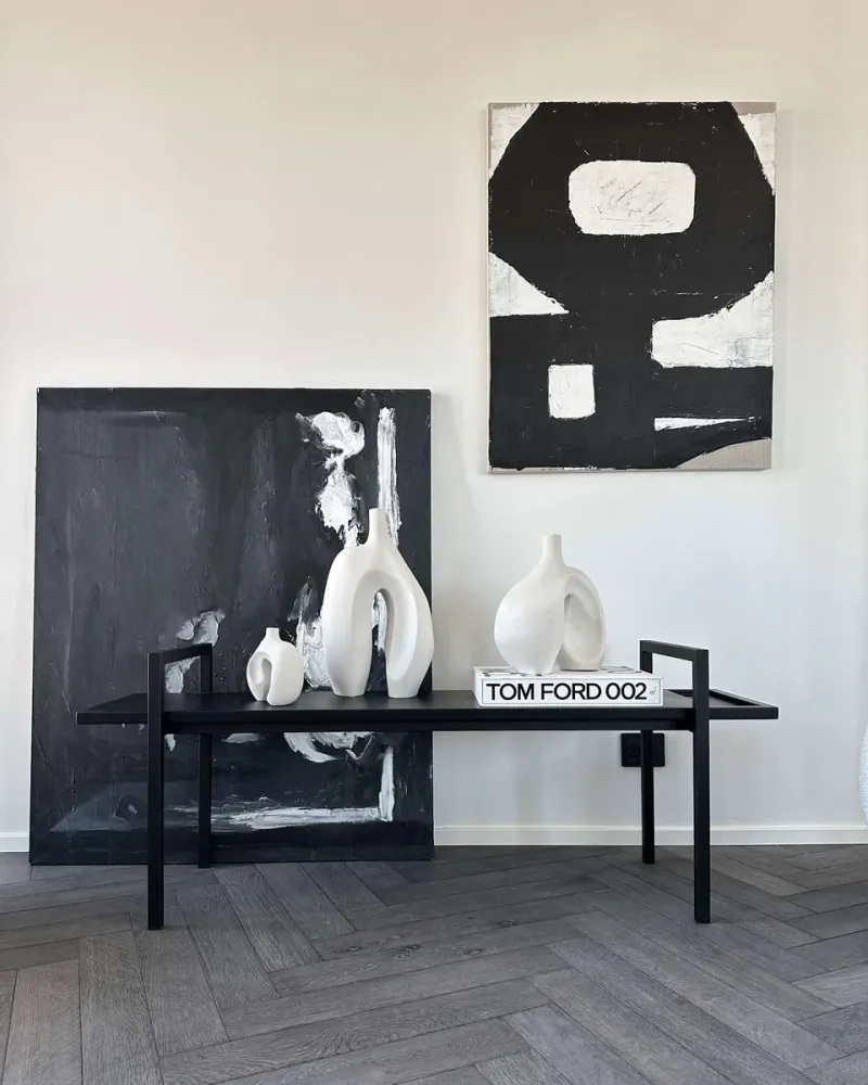 花器的特色在於由兩條雕塑般的腿部線條在中央交會,營造出微妙的平衡與張力。頂部的小開口可放置單枝花材、幾朵纖細枝葉,或簡約花藝設計;即使不插花,單獨擺放時亦同樣具備強烈的藝術感。