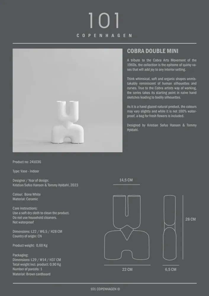 該系列是對 1960 年代眼鏡蛇藝術運動的致敬,是古怪花瓶和燭台的縮影,可擺至於任何室內環境增添歡樂。如同異想天開、柔軟而有機的形狀,讓人聯想到人體輪廓和曲線。該系列以手繪草圖為起點,形成身體輪廓。