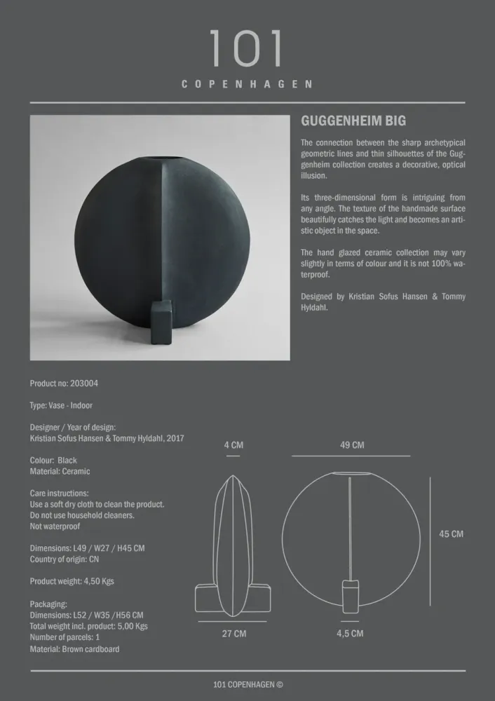 Guggenheim 系列藉由鮮明典型的幾何線條與纖薄的輪廓之間的牽動聯繫創造出的設計品。視覺上的交錯在平面器皿是個立體且任何一個角度看都有趣。手工製作的表面紋理及切面細緻的捕捉光線,是空間裡的藝術品。