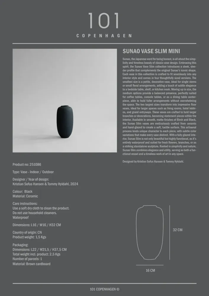 「素直」,源自日語,意為「純粹、誠實」,Sunao Vase Slim系列承襲經典設計,並以細長輪廓帶來優雅新意,完美融入多種空間風格。