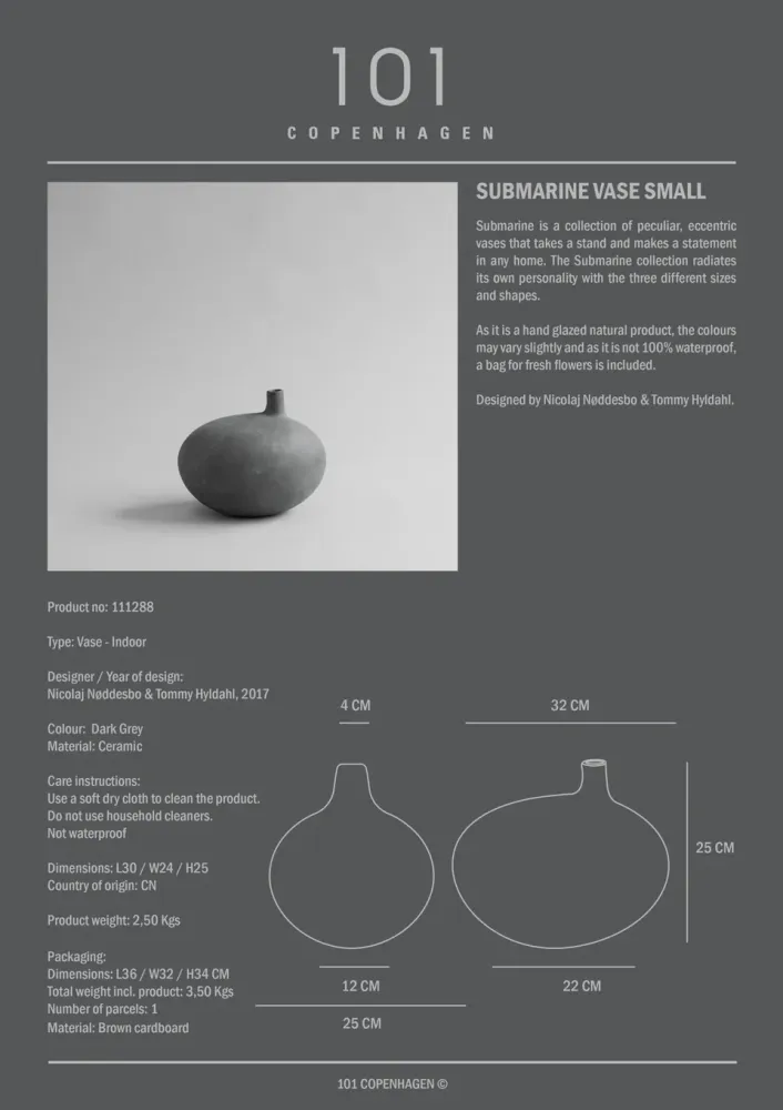 • 潛艇花瓶,小 - 深灰色