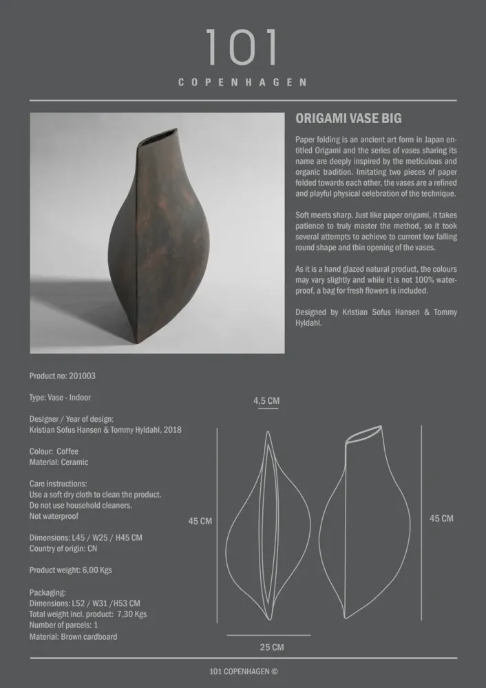摺紙是日本一種古老的藝術形式,名為 Origami,此花瓶系列造型細緻便以此命名。