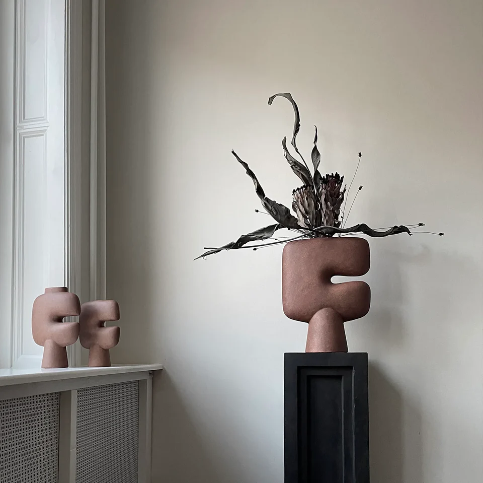 Tribal 系列是一系列花瓶,是以部落族群面具為雛形概念的雕塑設計品,可作為花瓶投擲花朵或純粹作為藝術品。它就像一個張開嘴巴的面具托於圓體底座上。是一件造型優美的物品,採用平靜、舒緩和塵土飛揚的赤陶色和灰色製作而成。
