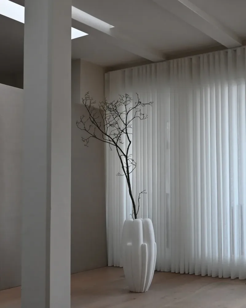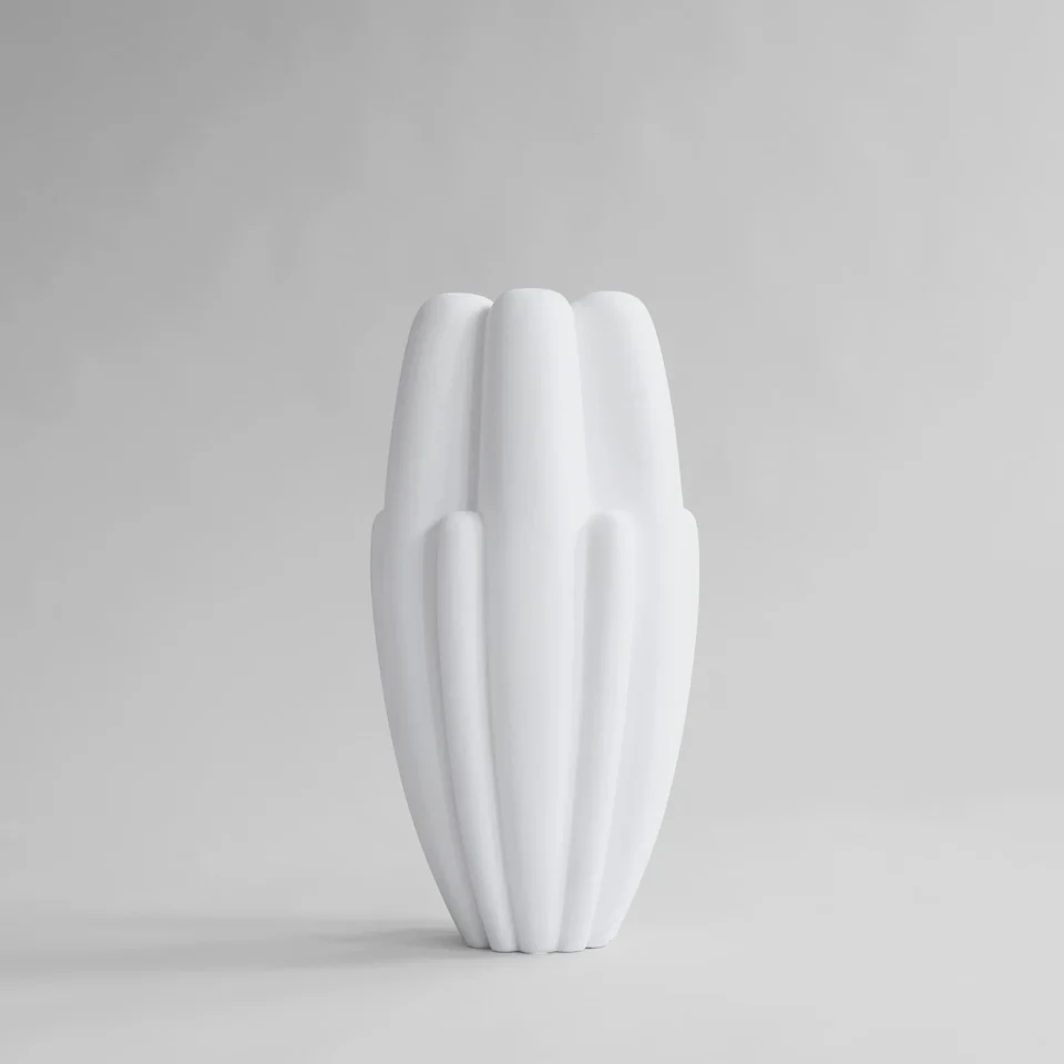 Bloom 是對 70 年代花卉靈感設計的詮釋,以極簡、優雅的方式重新構想。通過日照光影的變換由表面至深處,光與影的交織在花瓶的輪廓上舞動,因光影變化在一天中展現不同的感受,賦予花瓶動態變化。
