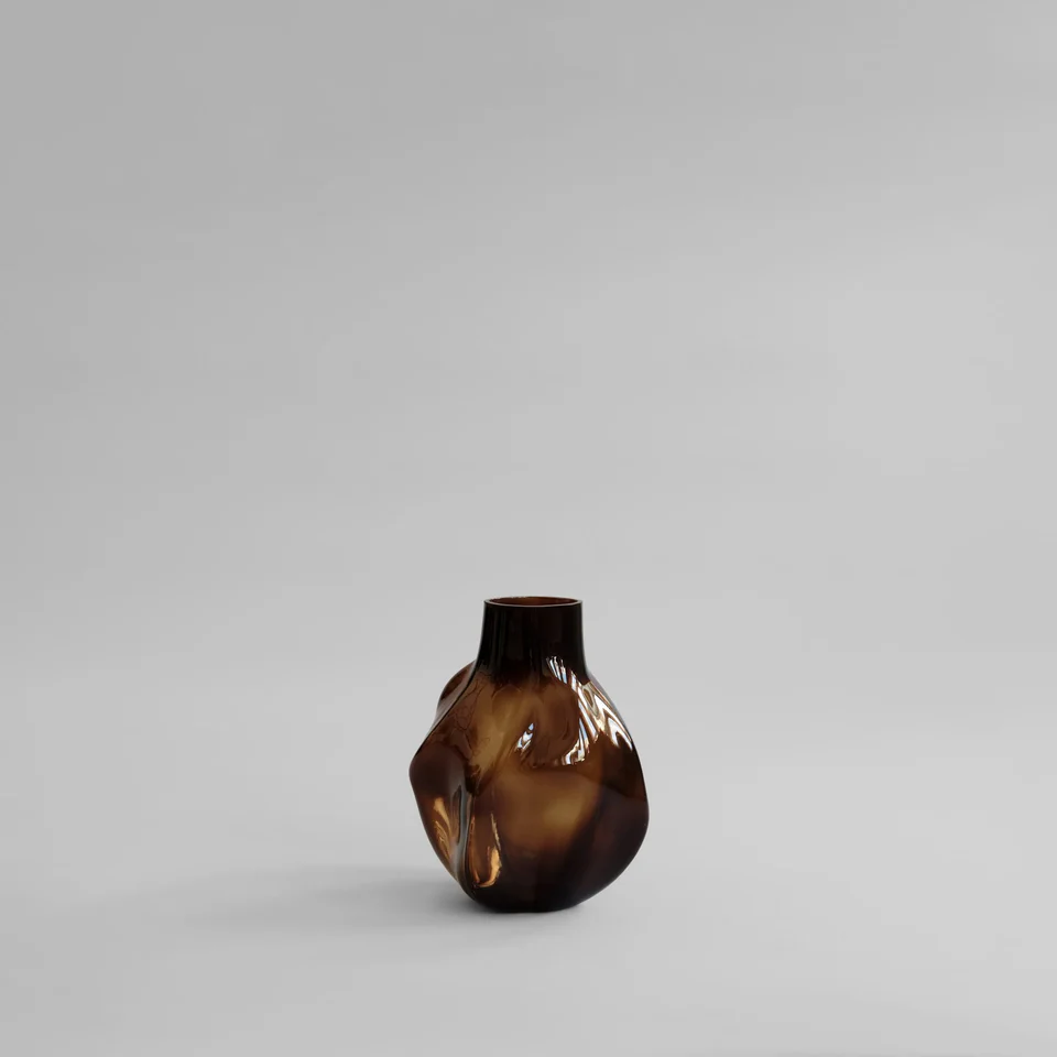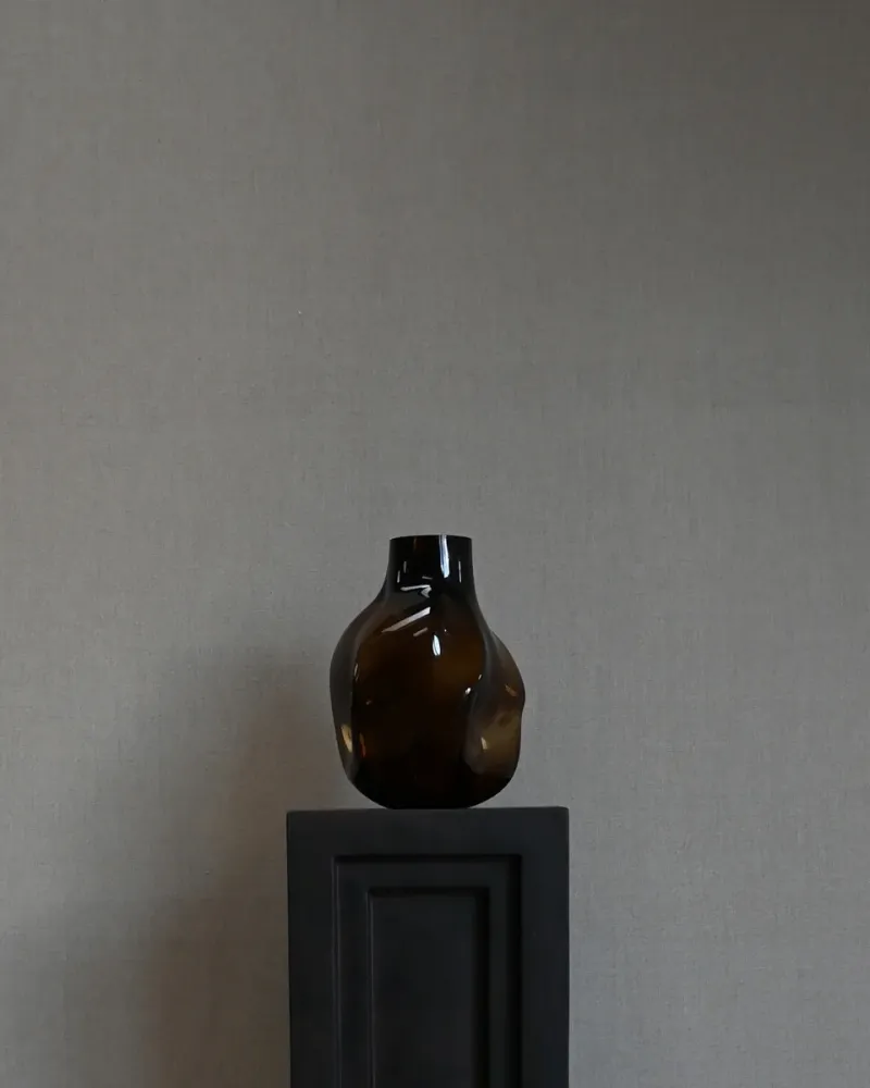 此系列提供兩種尺寸,小款適合作為餐桌上的花藝擺設,也可點綴玄關桌或咖啡桌;大款則適合展示豐盈花卉或造型獨特的枝條,可擺放於咖啡桌上作為視覺焦點,亦可獨立置於地面,呈現雕塑般的藝術效果。煙霧森林色為深色透明調,帶有微妙的古銅光澤,為空間增添層次與優雅氣息。