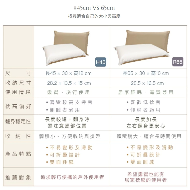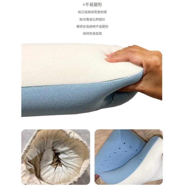 🔹不易變形:枕芯採用高密度材質,結合黃金比例設計,確保在收納時不易變形,保持完美形態
