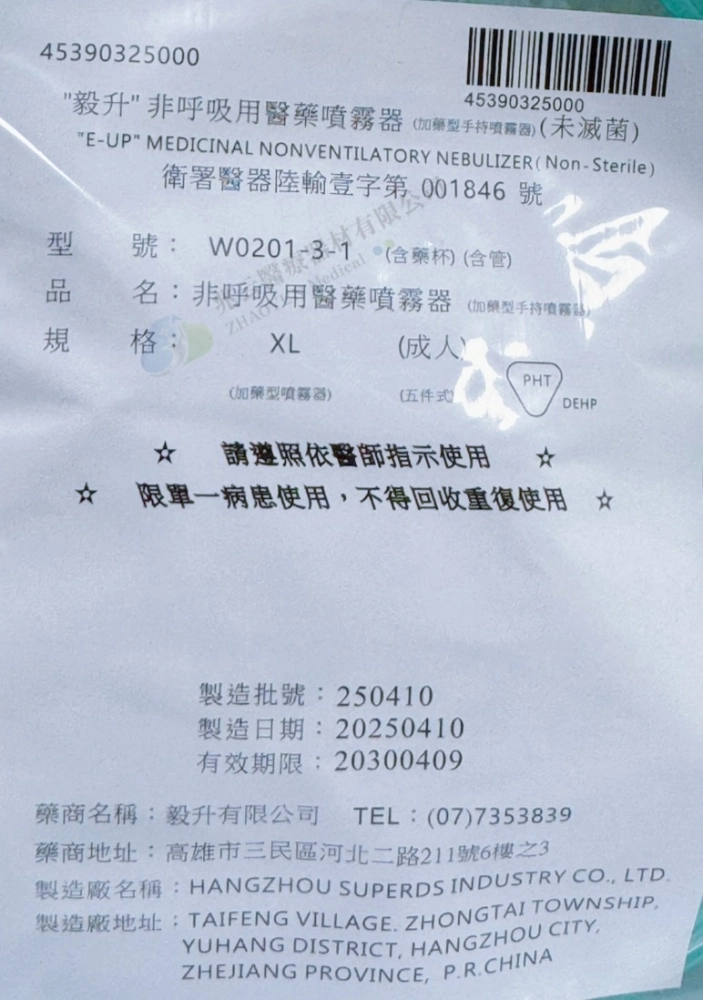 製造廠名稱:NINGBO SHENGYURUI MEDICAL APPLIANCES CO.LTD.